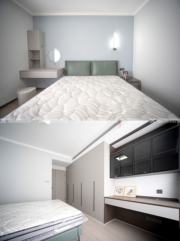 全屋定制:柜體板材是十環(huán)認(rèn)證萬(wàn)象天冠18厚杉木實(shí)芯板,柜門做的是歐松板模壓門;五金是奧地利進(jìn)口百隆五金,自有全屋定制工廠實(shí)現(xiàn)門、墻、柜體化;
