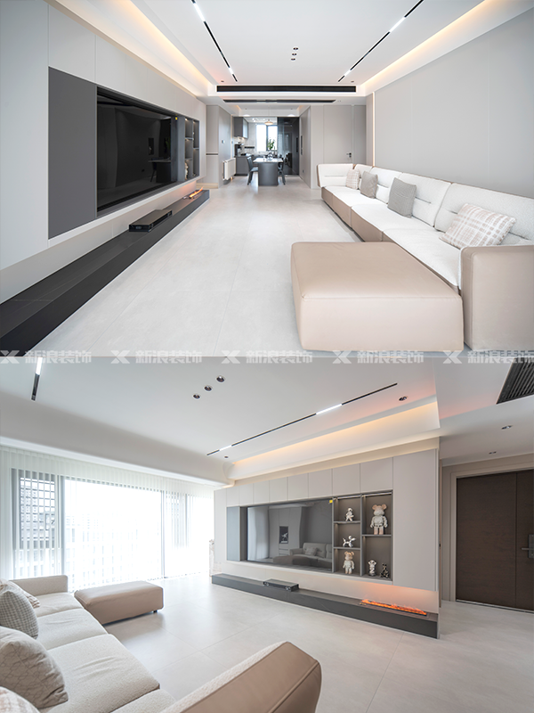 全屋乳白色為主,與無主燈設(shè)計(jì)搭配,顯大又高級