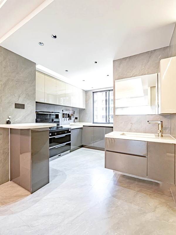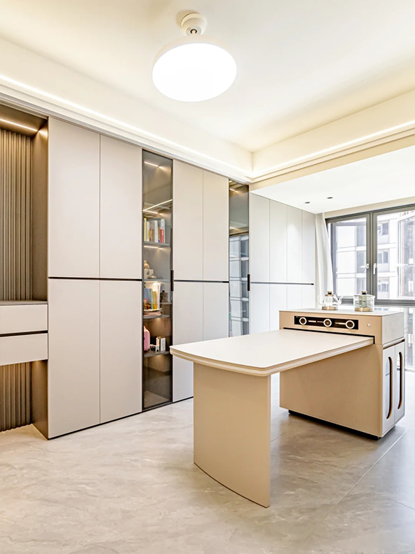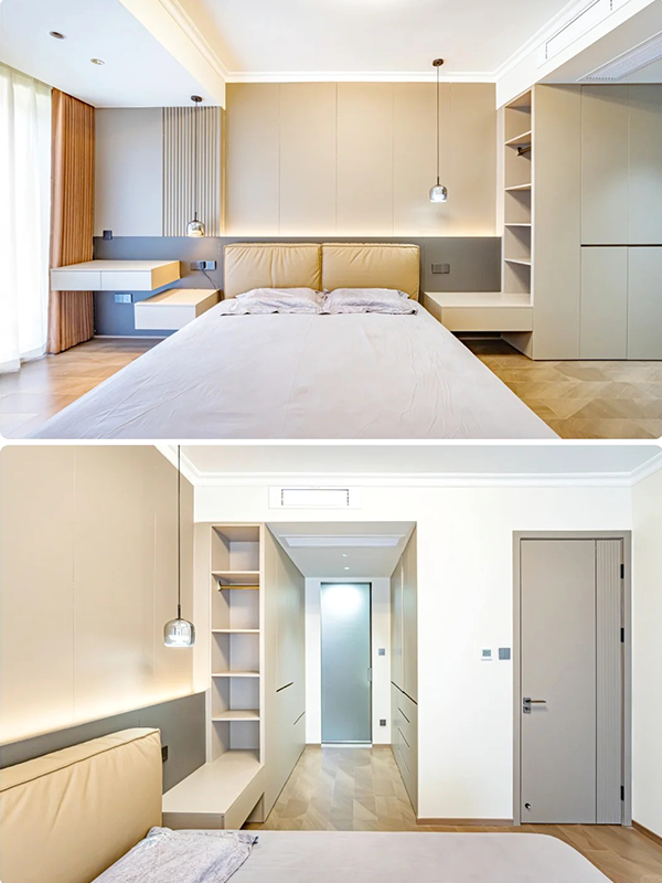 全房定制品做到門、墻、柜同色同造型,分段設(shè)計(jì)造型簡(jiǎn)潔好用。
