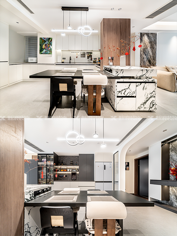 新浪裝飾,麗爾曼頓,極刻美家,長(zhǎng)沙裝修,高級(jí)感客餐廳一體設(shè)計(jì),現(xiàn)代風(fēng)格設(shè)計(jì),舊房改造,高級(jí)灰,一比一還原實(shí)景落地,裝修案例分享,開放式廚房