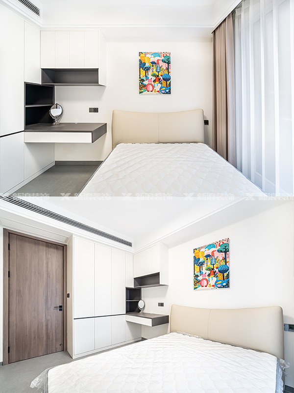 - 木色元素主要用在了墻板和部分家具上,給冷色調(diào)的空間增添了一絲溫暖。