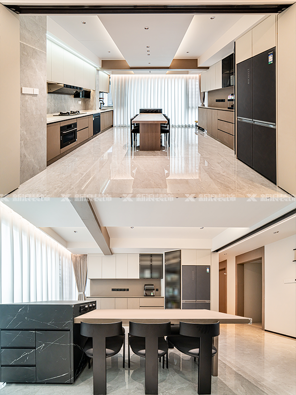 打通空間界限,視覺通透感翻倍!布里奇橡木+象牙灰配色,高級又溫柔,開放式廚房與餐廳聯(lián)動,生活儀式感滿滿~