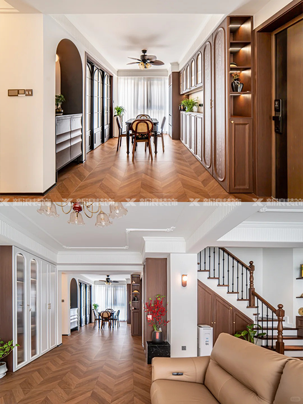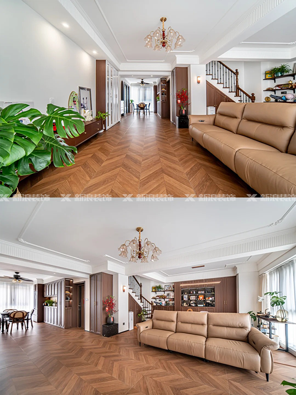 魚骨紋仿木地板瓷磚通鋪,搭配簡約吊頂,視覺上整體性非常強