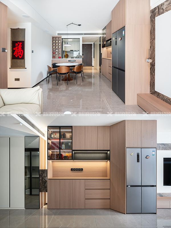 開放式客餐廳:懸浮電視柜+通頂餐邊柜
