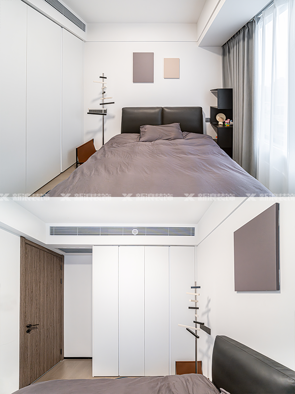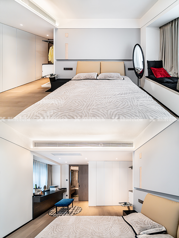 它不僅完美解決了 次凈衣區(qū)的收納難題,更重要的是,它本身就像一件藝術(shù)品!輕盈懸浮的體塊感,大大增加了觀賞性,每天走進(jìn)臥室都是享受