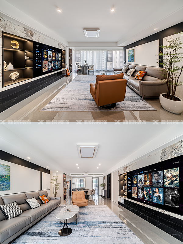 客廳:巖板電視墻+懸浮沙發(fā)背景
